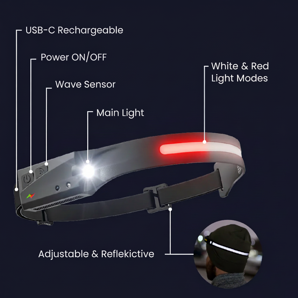 Adventure Light 2.0 ist die innovative Stirnlampe, die dir maximale Sicht und Freiheit in der Dunkelheit bietet. Ob beim Joggen, Wandern, Camping, Arbeiten oder Gassi gehen – diese Stirnlampe hält deine Hände frei und deinen Weg glasklar ausgeleuchtet. Ihre einzigartige Kombination aus 230°-Weitwinkellicht, 150 m Fernstrahl, Rotlichtmodus und SOS-Funktion macht sie zu deinem ultimativen Begleiter für jedes Abenteuer.